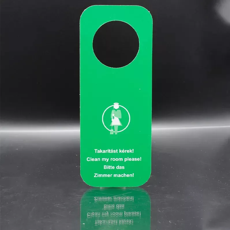 A Classic Elegance ne zavarj tábla. Zöld oldal: Takarítást kérek! Piros oldal: Kérem ne zavarjanak! Magyar, angol és német nyelvű. Ajtó tábla.
