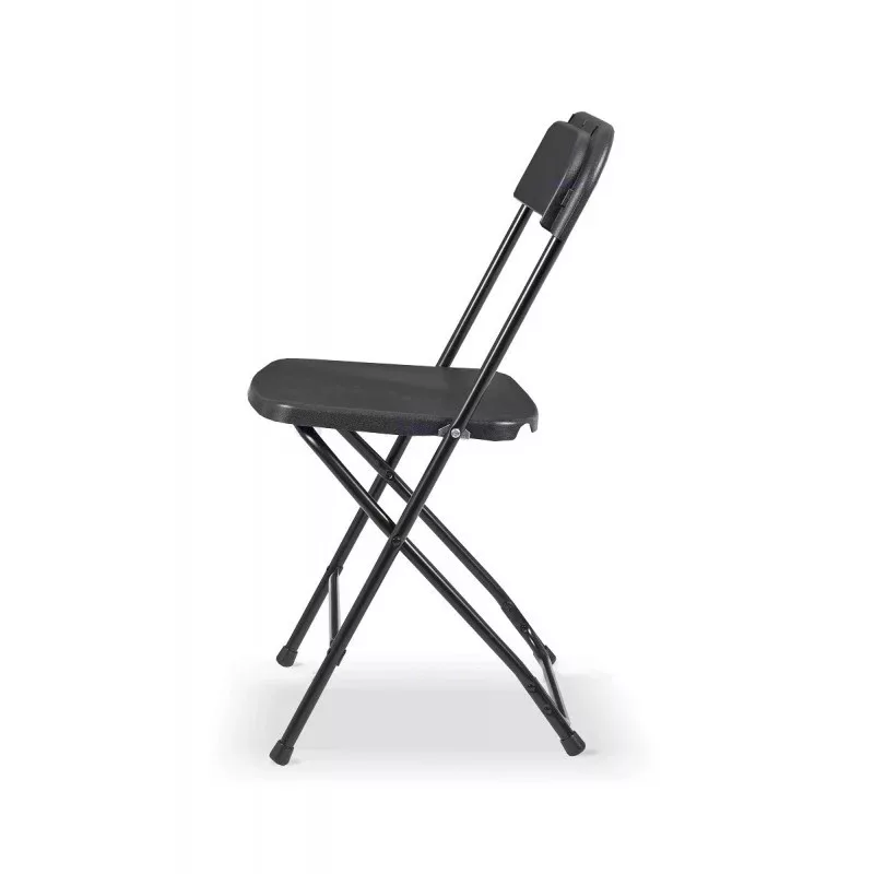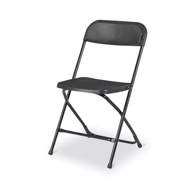 Fekete összecsukható konferencia szék. Tartós az ülés, a háttámla műanyagból készült. Kiválóan ellenállnak az időjárási viszonyoknak, beleértve a nedvességet és az UV-sugárzást is. A műanyag lábvégeknek köszönhetően kiküszöböli a zajt és védi a padlót a karcolódástól. Maximális terhelhetőség 120kg. A szék súlya: 3.3kg. Váz: 19mm széles, 1,2mm vastag. Ülőfelület: 40x40cm